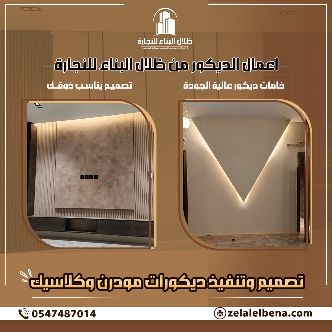 ظلال البناء تقدم حلول ديكور ونجارة راقية، بتشطيبات دقيقة ومواد عالية الجودة.
